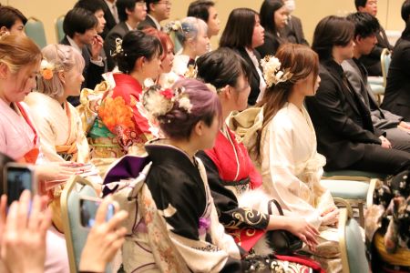 ▼20歳を祝う会では、新たに大人の仲間入りを果たした皆さんの門出を祝福し、希望に満ちた晴れやかな姿が見られました。